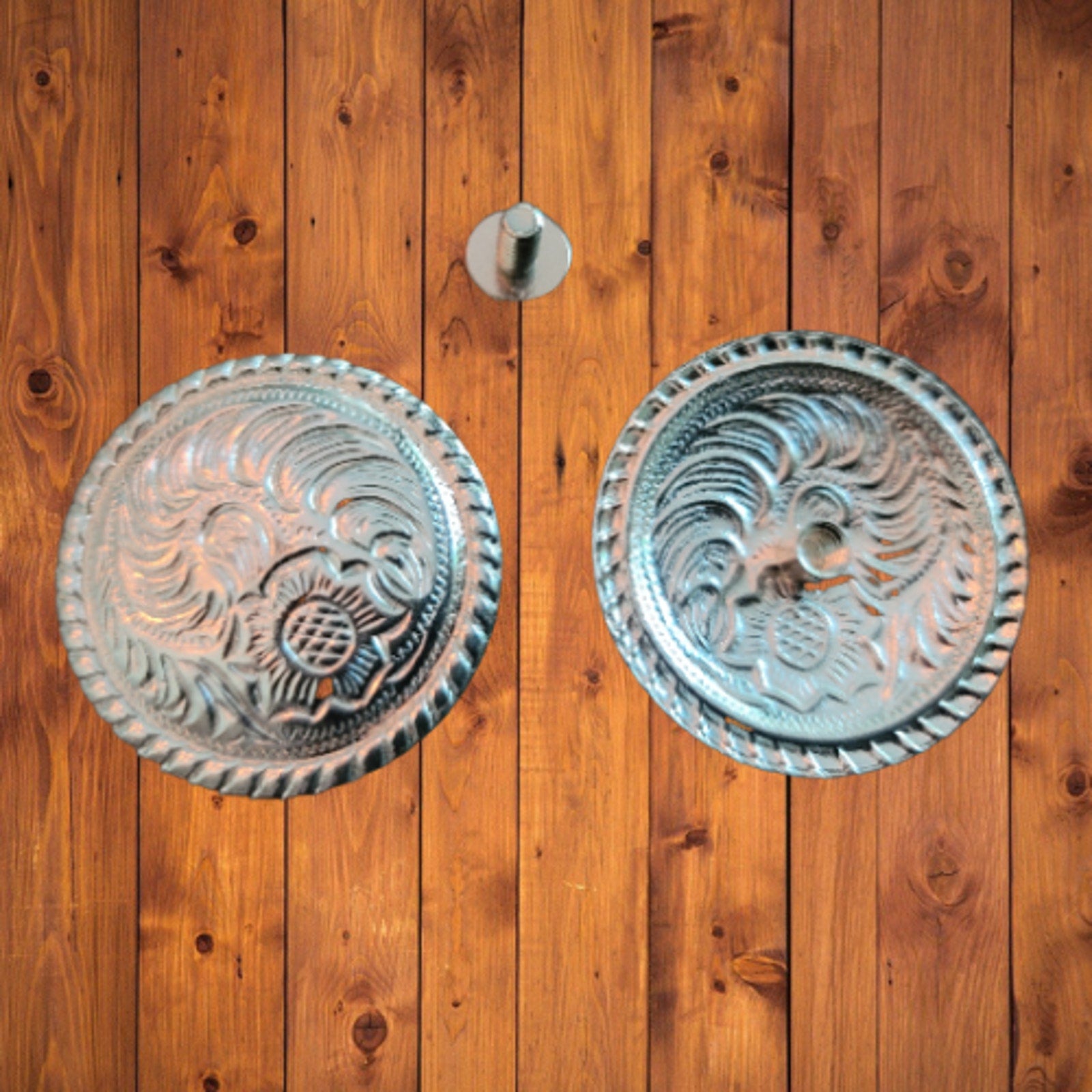 Silver plated conchos - set of 2. Approx 1 1/2" across. Includes chicago screw back.