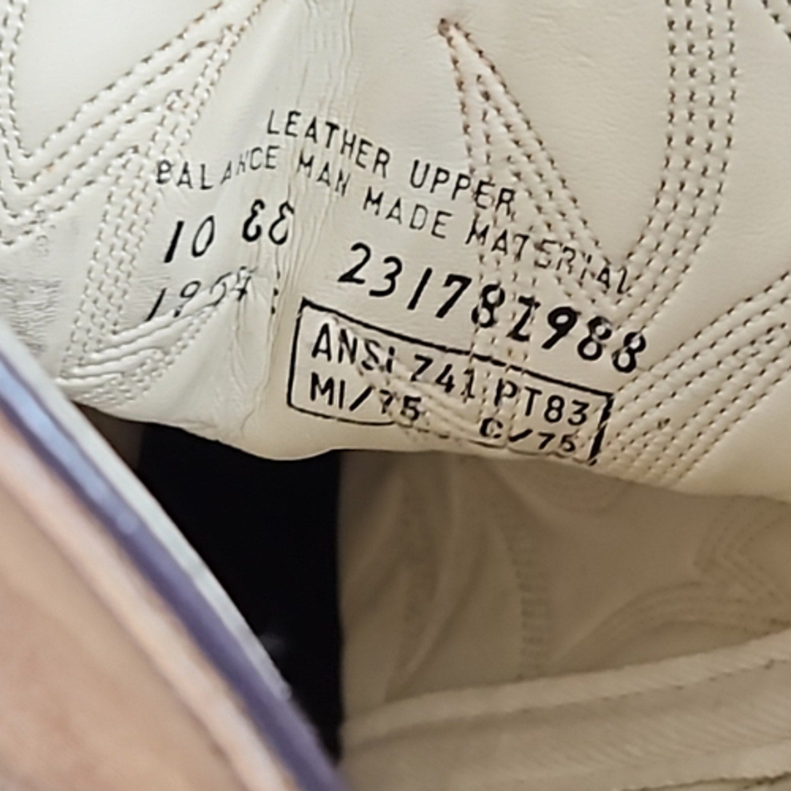 Great safety boots! Do not appear to have ever been worn but there is some discoloration on the foot. Sole is Oil Resistant Non-Marking Miragum. Made by the Lehigh Safety Shoes. Tan in color, size 10 EE.