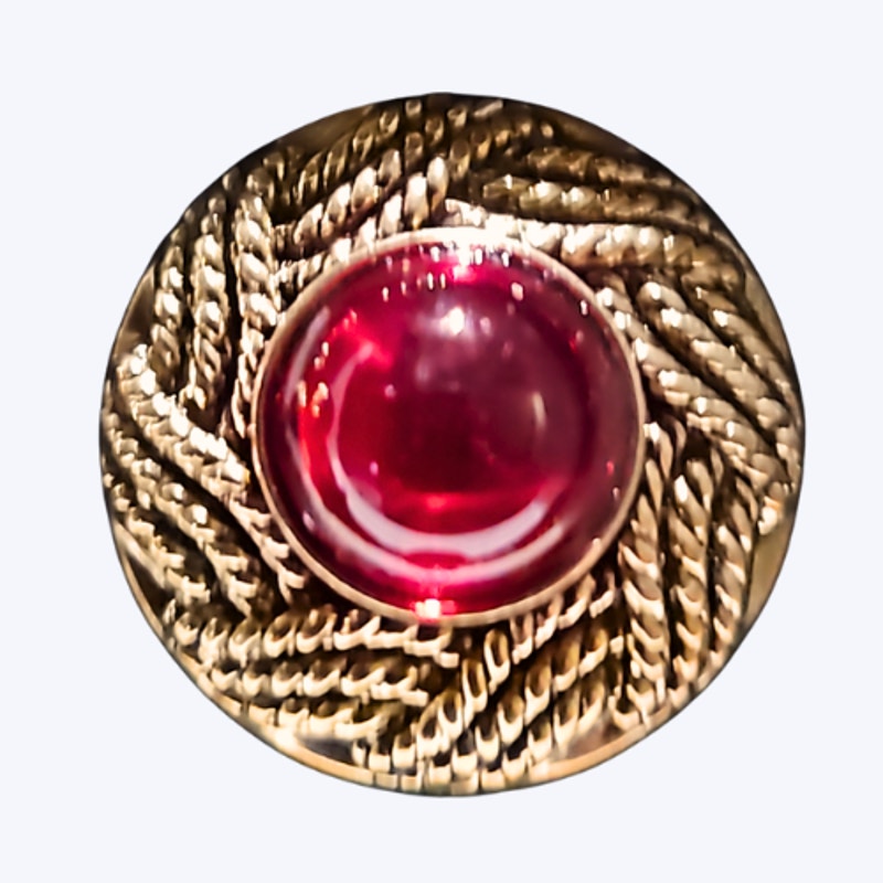 This set is "Tart" - it's a red gem surrouned by ropes of gold. Set of 4.
