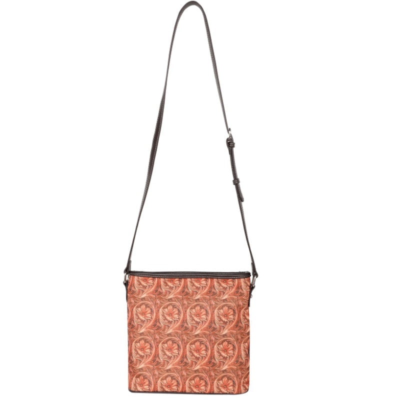 Montana West Canvas Tooled Leather Print Crossbody NEW
