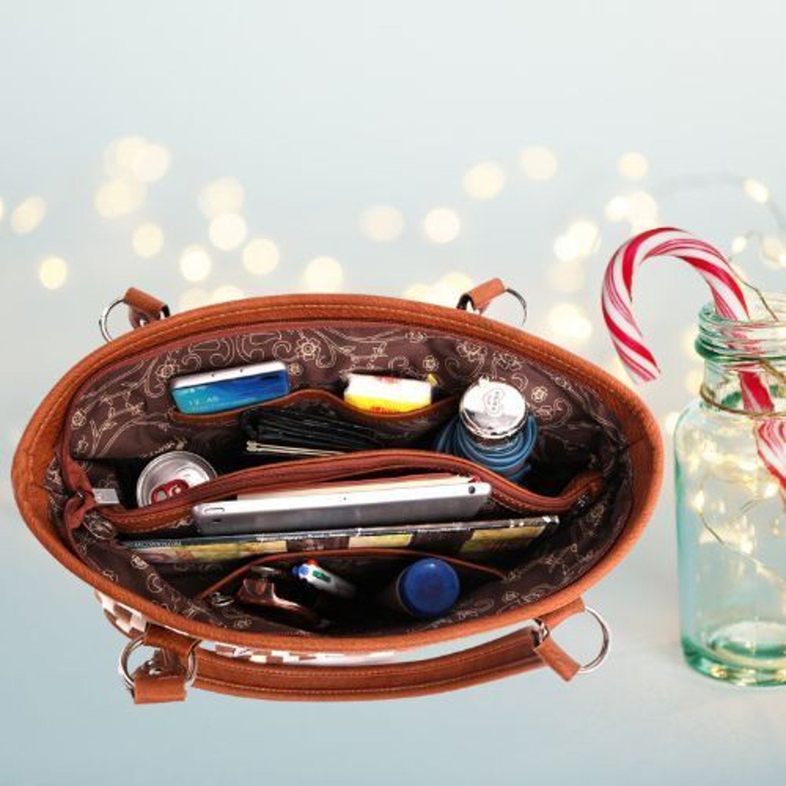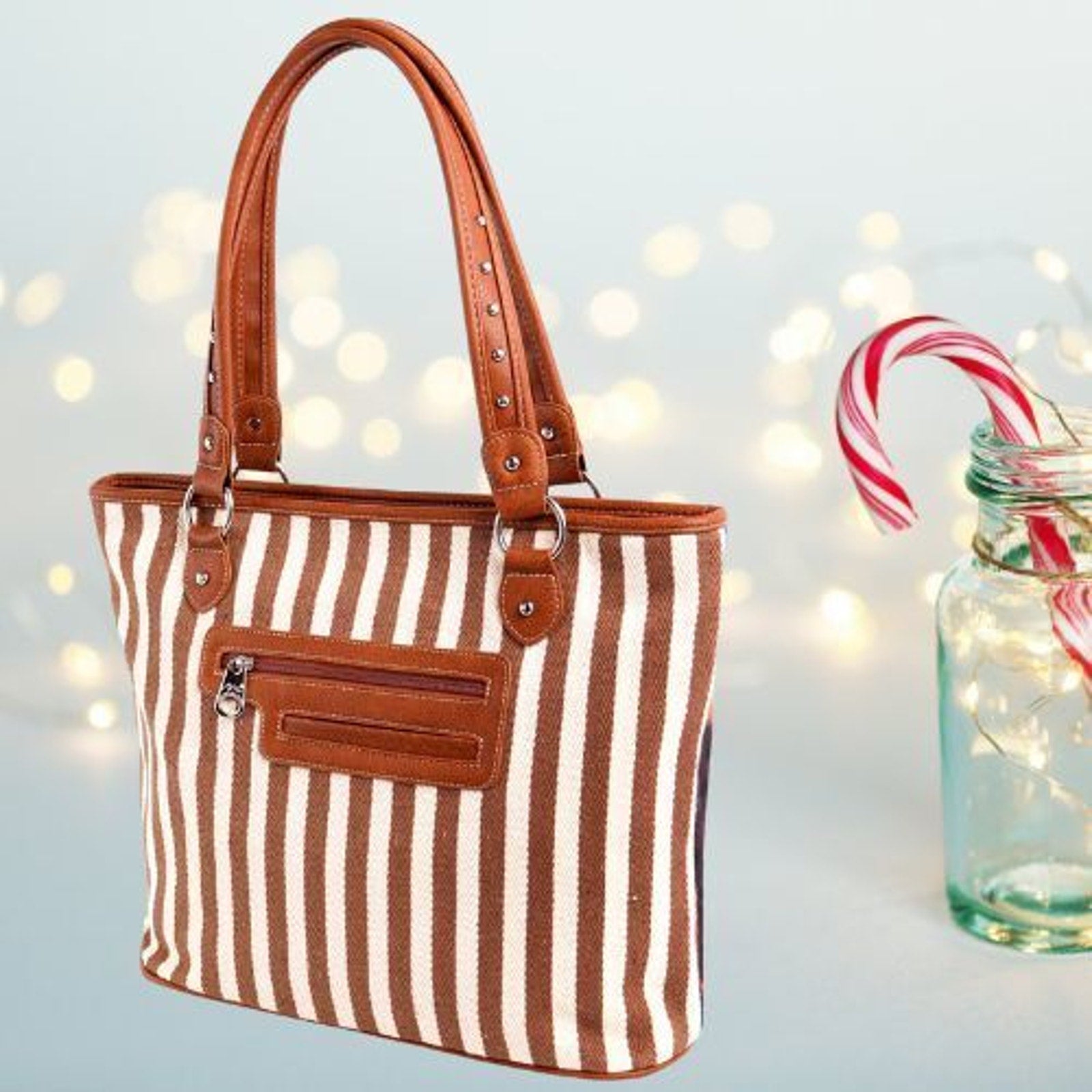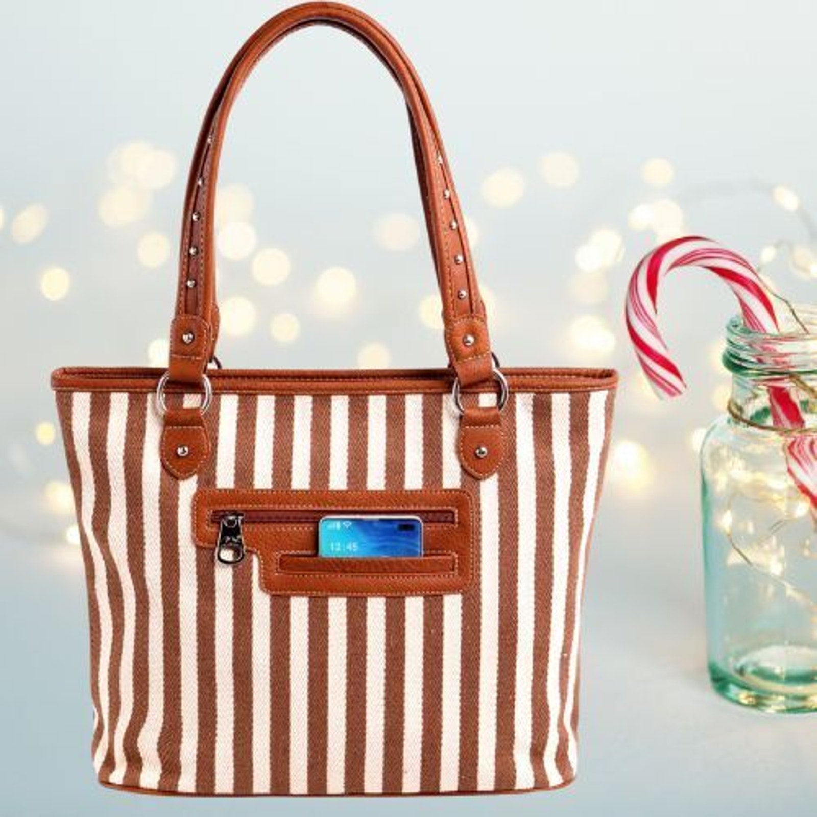 Made of the PU (faux) leather trim and canvas , this tote bag has: