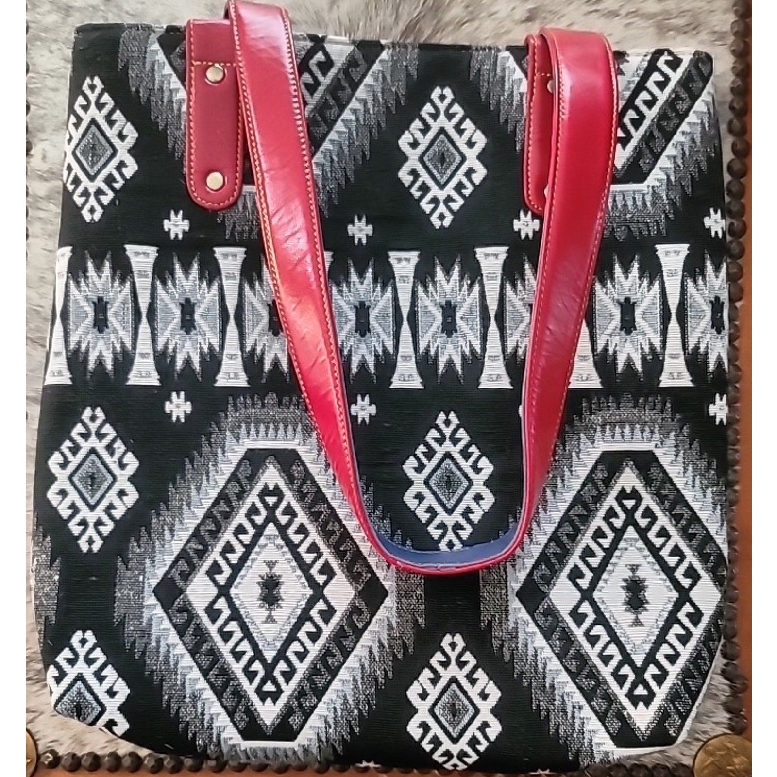Tapestry and Leather Tote Bag Black & White Graphic! NEW