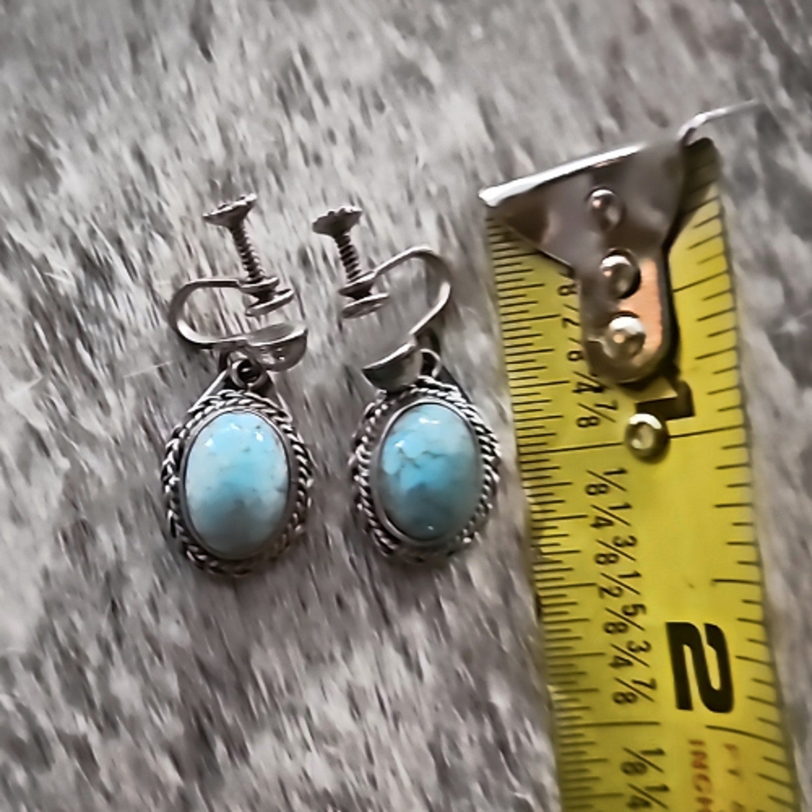 Vintage Sterling Turquoise Earrings Screw Back Non Pierced Clip Ons Pre-Loved