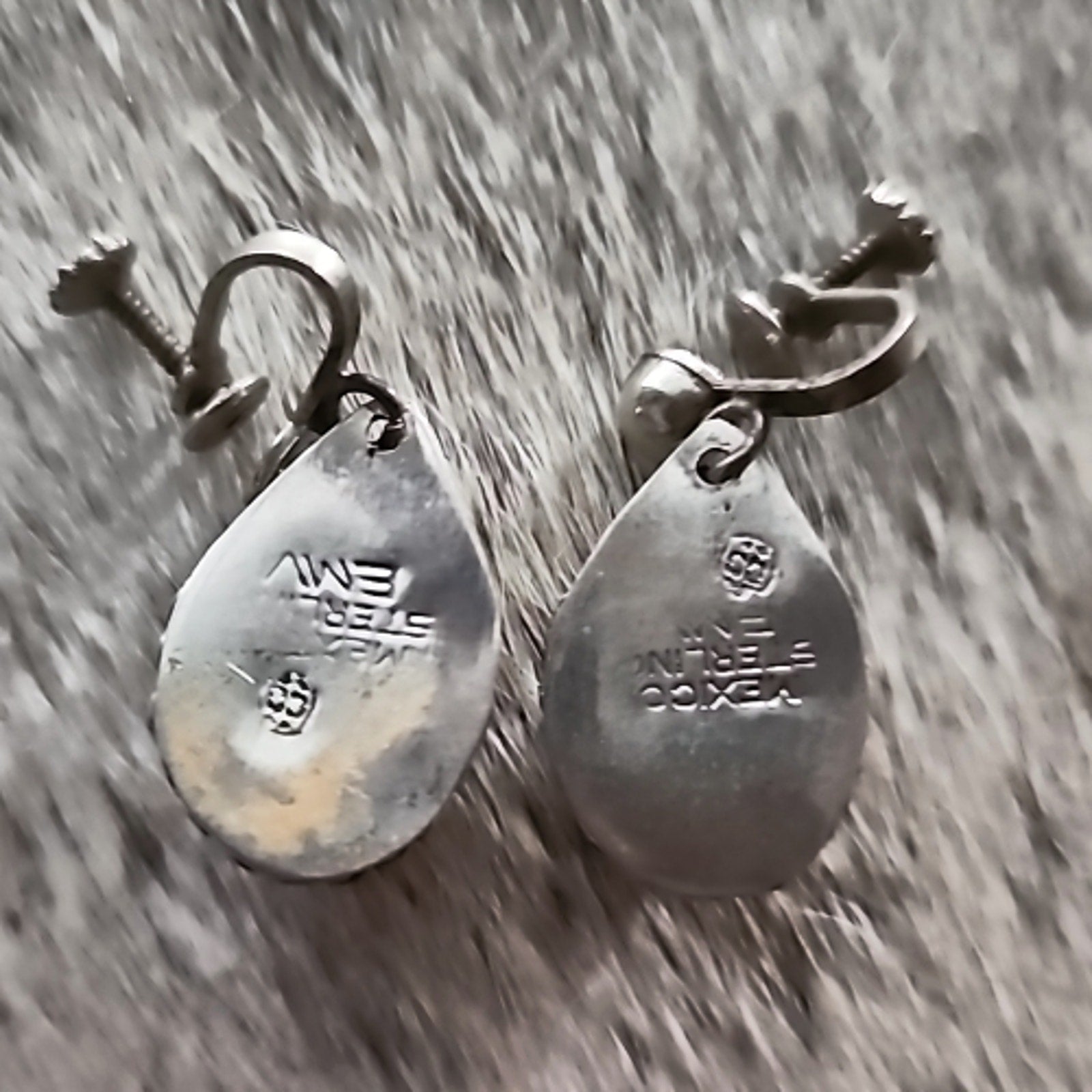 Native American Turquoise and Sterling drop earrings. Marked Mexican Sterling on back.