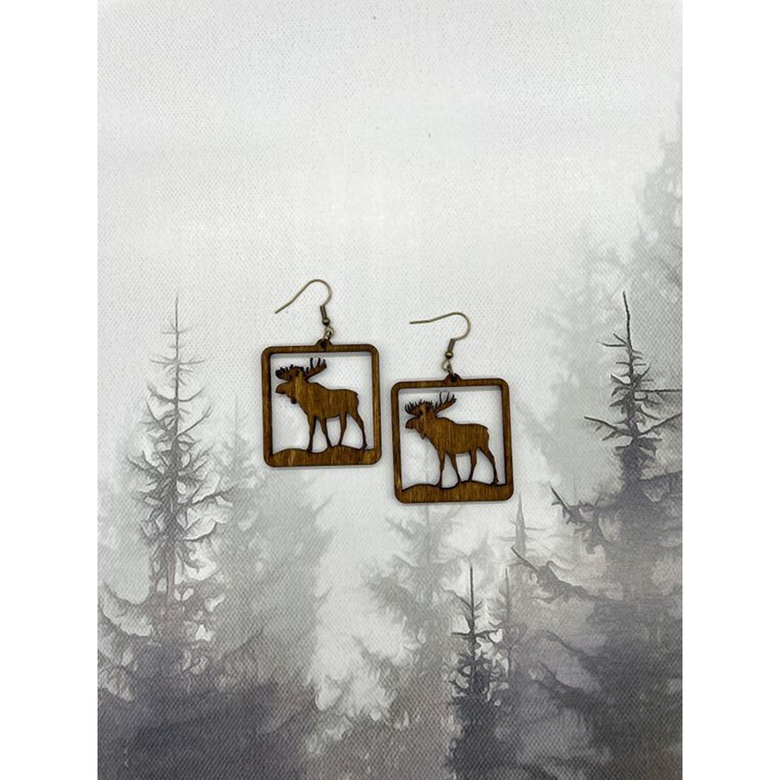 Wild North Wooden Earrings NEW Moose