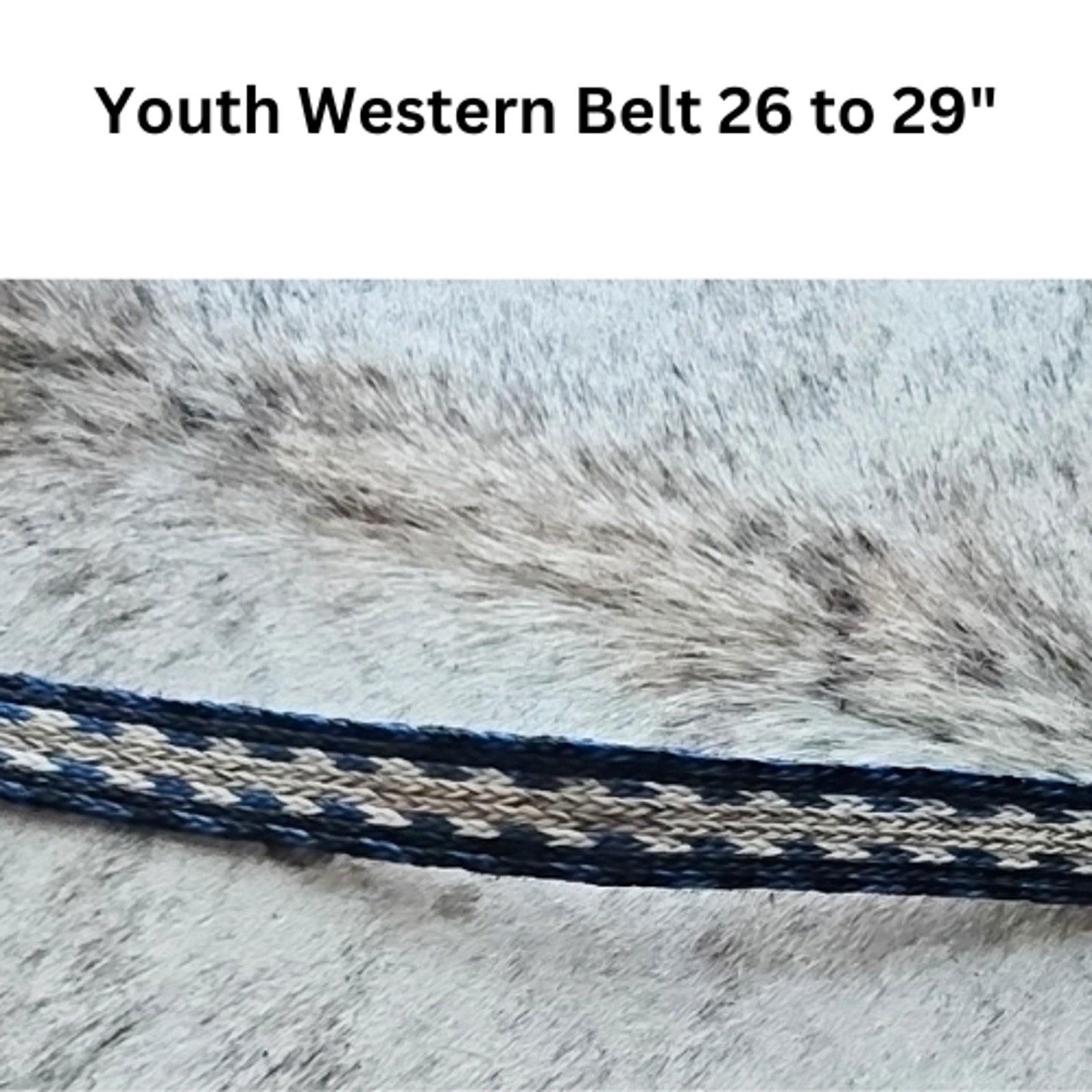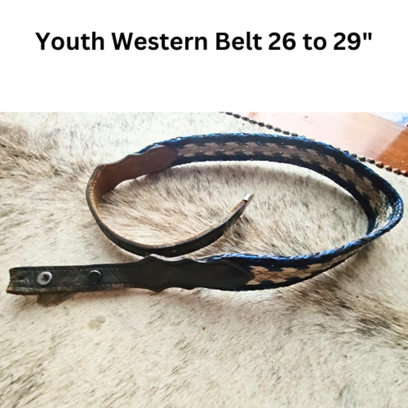 Youth Western Belt Hitched 26" to 29" Black Cream and Blue USED